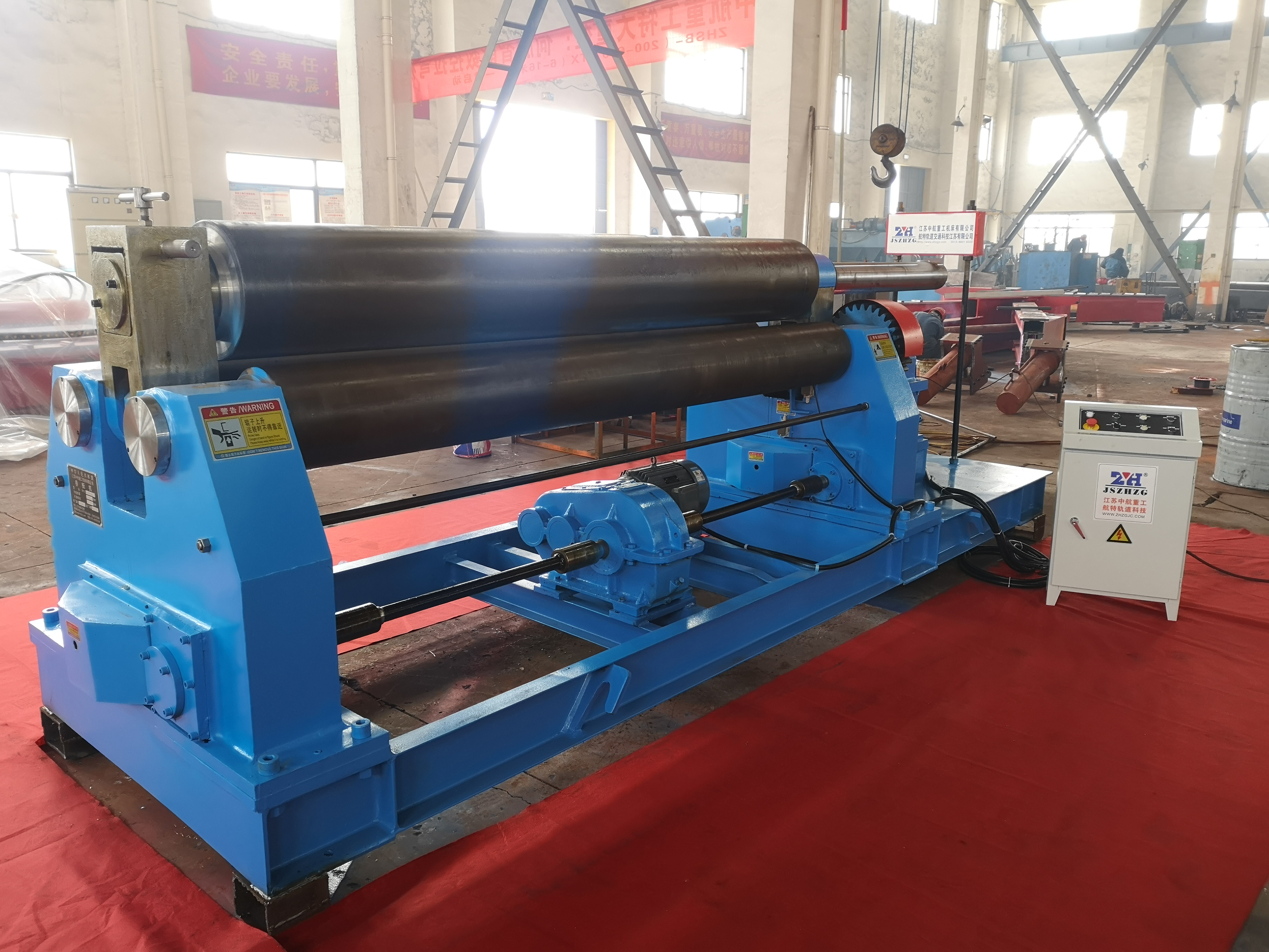 3、翻倒架完全復位(操作臺上翻倒復位指示燈亮)及平衡油缸已上升至最高點時,卷板機上輥升降、下輥正反轉、托輥升降操作方可進行。
