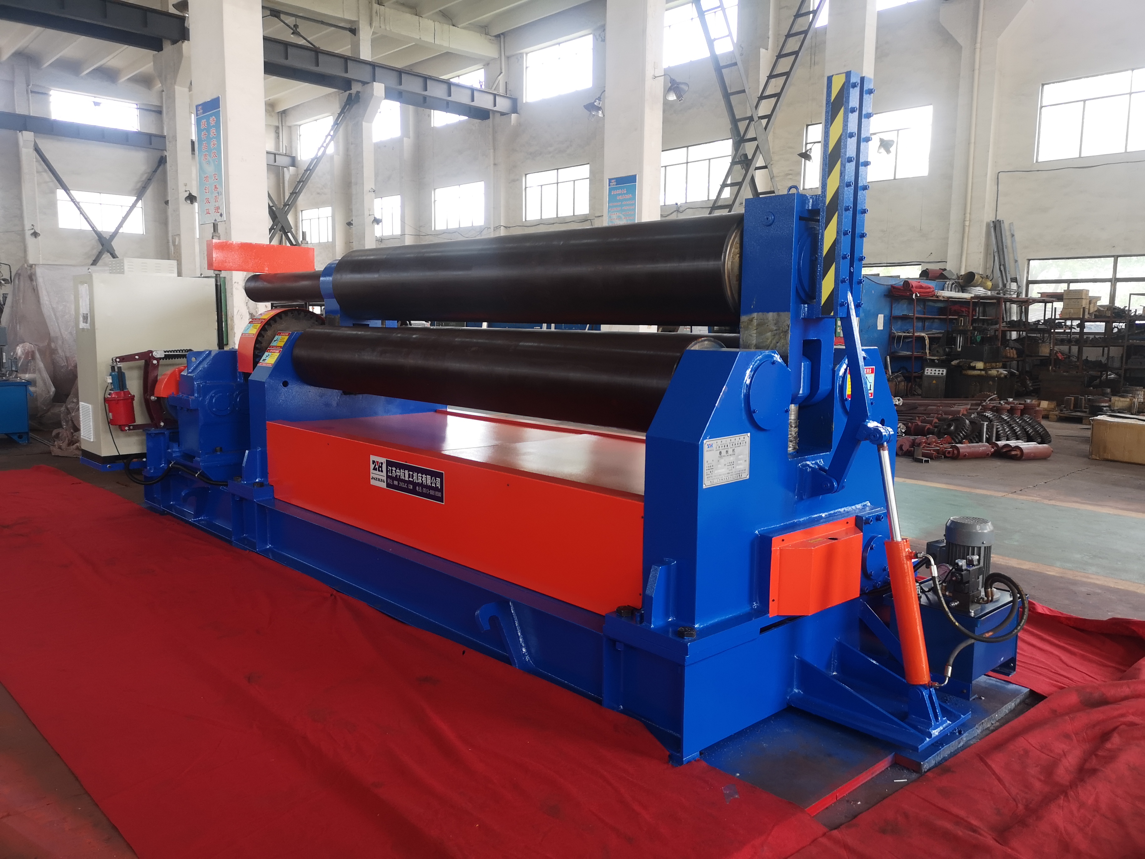 三輥卷板機有機械式和液壓式:機械式三輥卷板機分為對稱和非對稱。