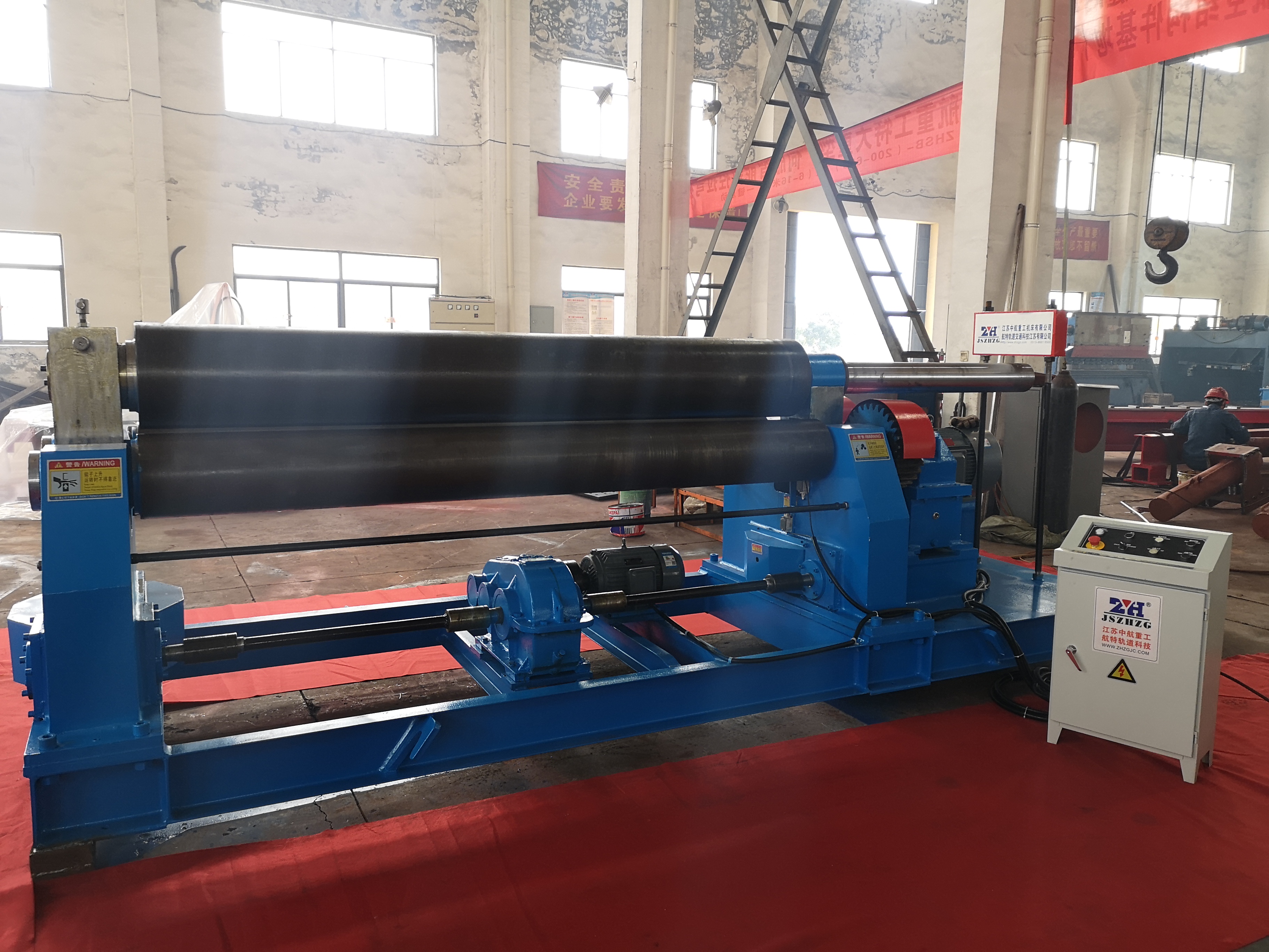 該機為上調式對稱式三輥卷板機,可將金屬板材卷成圓形、弧形和錐形工件,兩下輥為主動輥,上輥為從動輥。廣泛使用于造船、鍋爐、航空、水電、化工、金屬結構及機械制造行業。